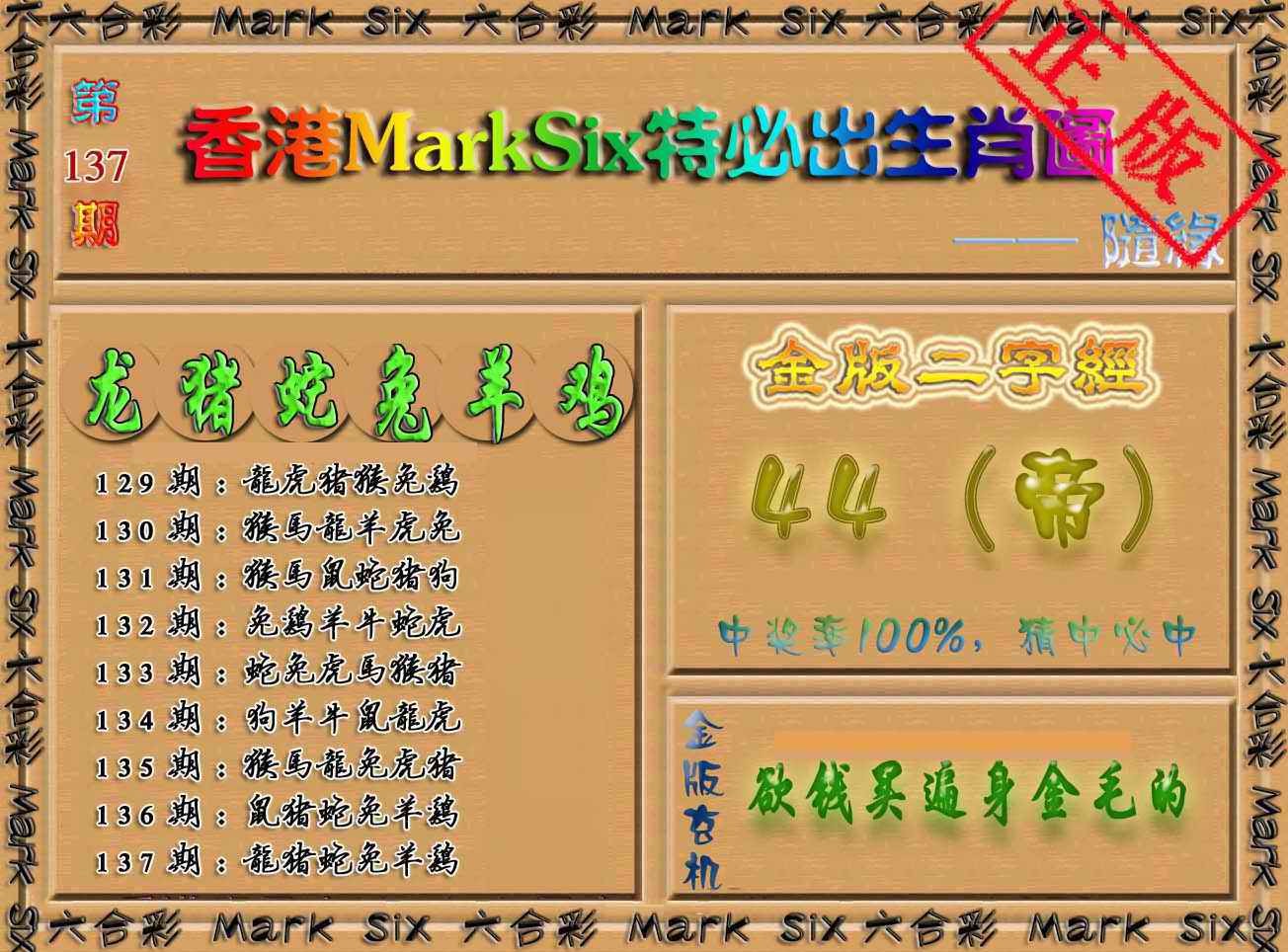 137期特必出生肖图(加大版)[图] | 爱码网