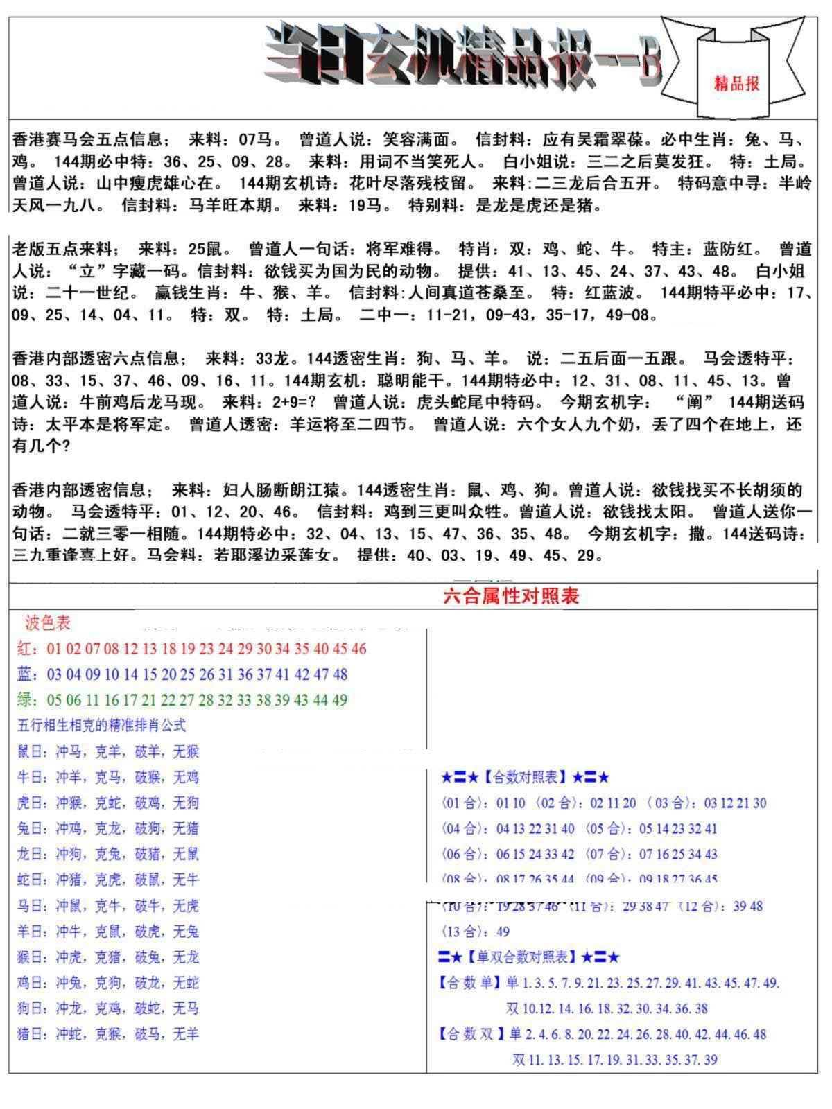 144期当日玄机精品报B[图]